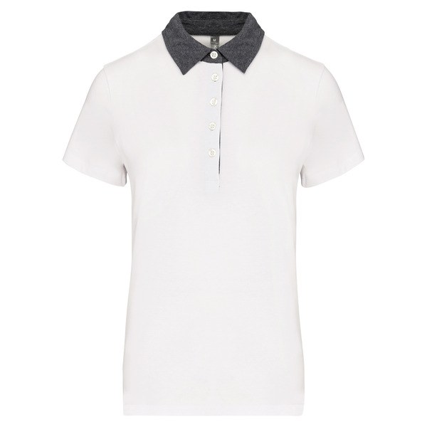 Kariban K261 - Бял/ Тъмно Сив Меланж - Ladies’ two-tone jersey polo shirt