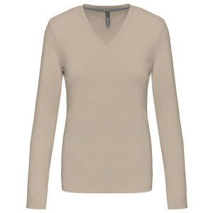 Kariban K382 - Light Sand - LADIES' LONG SLEEVE V-NECK T-SHIRT