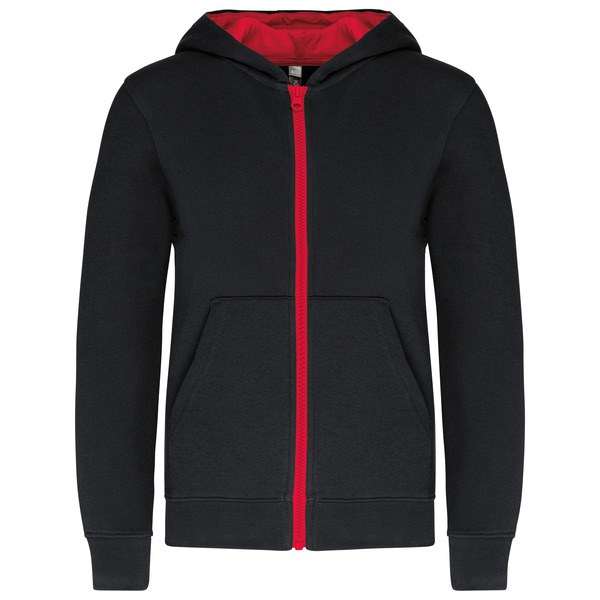 This hooded sweatshirt with zip for kids includes headphone grommets in the kangaroo pocket and at the neckline, making it ideal for music lovers.