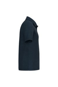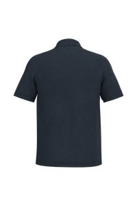 V-shaped buttonless polo shirt placket and collar in main material Reinforced shoulders.